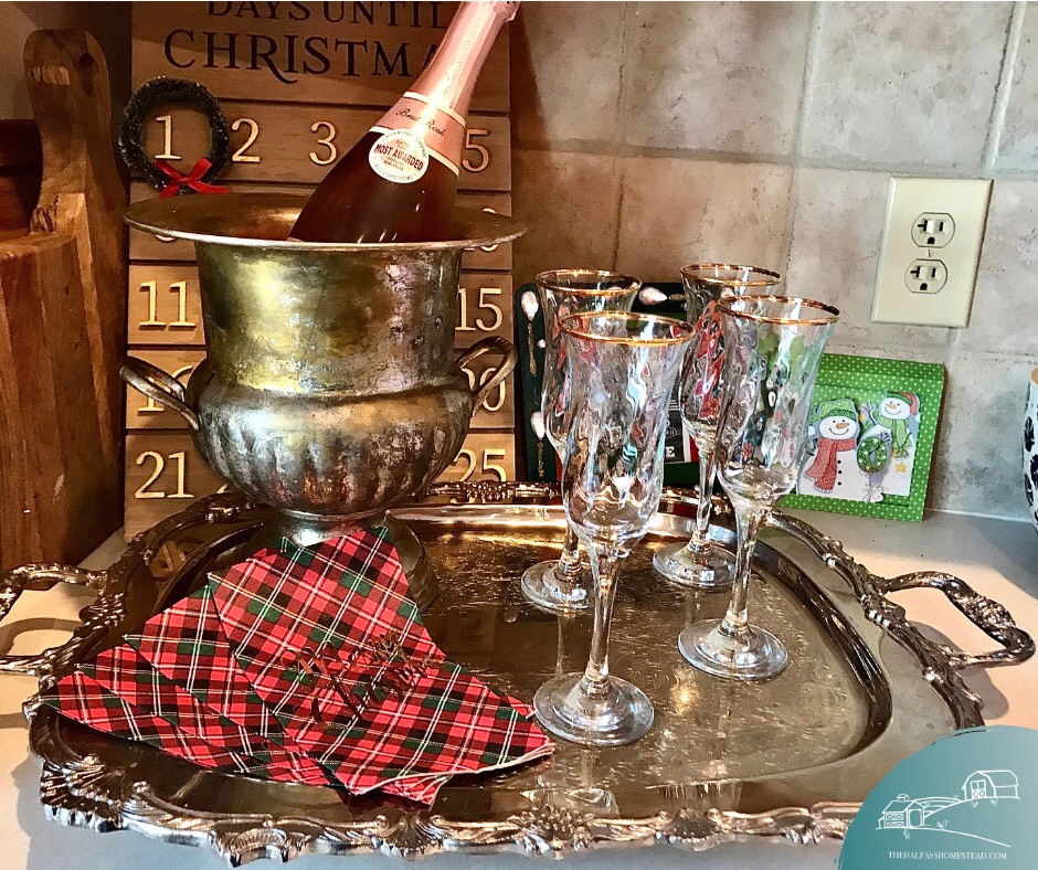As I was setting everything out for mimosas for a small Christmas brunch we hosted last month figured I could use the silver urn as an ice bucket. This decision was then followed by searching if this was actually what this urn was for and how to clean the tarnish FAST without polish.