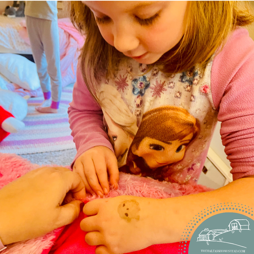 Easy, smokeless heat. Originally I planned on getting a bowl-shaped fire pit for the space but hadn’t purchased one yet and the kids were so excited to have a fire in the new space so I moved the old fire ring to the new space. But Sr. had other plans. He wasn’t a fan of a wood-burning fire under our beautiful tree. Plus we’ve (I) got an awful track record of wanting to have a fire right after a rain–when all our wood is wet. So he surprised me with a great little propane fire table. I love it! I can have fire any time I want AND we don’t all need to go wash off the smell of smoke when we come in.