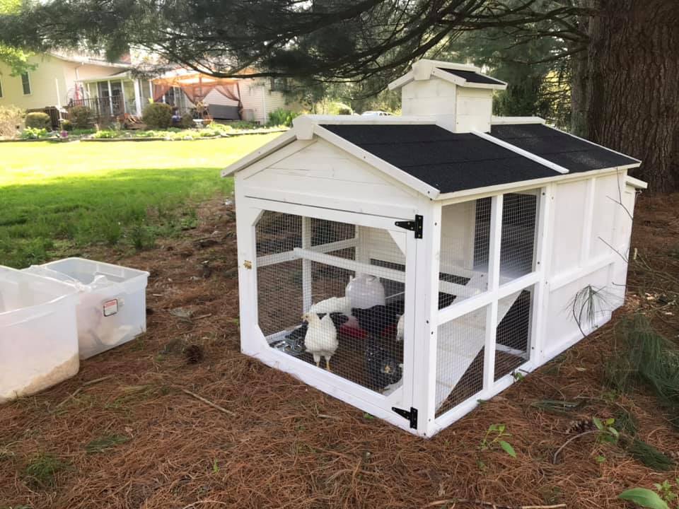 After all the rain, the coop was starting to smell. The chickens are getting to big! Our coop “for 4-6 chickens” is getting a little tight. Jr. helped me clean the coop on Friday while the girls and a few neighborhood kids kept an eye on the chicks as they roamed the yard (maintaining a social distance of course).